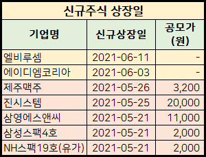 2021년 6월 신규상장 주식 청약일정은 추후 사정에따라서 연기되거거 변경될수있으니 참고하세요.