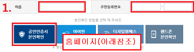 공동인증서가 없으면 핸드폰 본인확인도 가능하니 참고하시기 바랍니다.