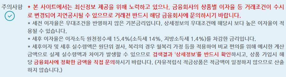 금융상품 한눈에는 상품별 세부내용이 수시로 바뀌어서 변경될수있으니 거래전에 반드시 해당 금융회사, 은행, 증권사 등에 문의해서 재확인을 해봐야합니다.