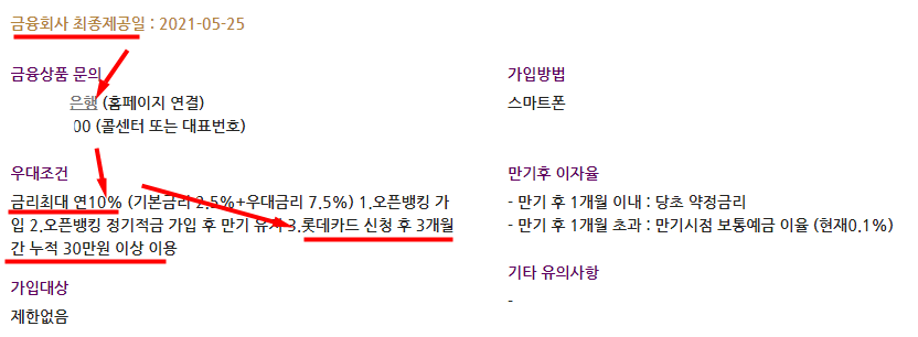 7~10%의 적금의 경우에는 보험이나 신용카드를 만들라는 조건이 대부분입니다.