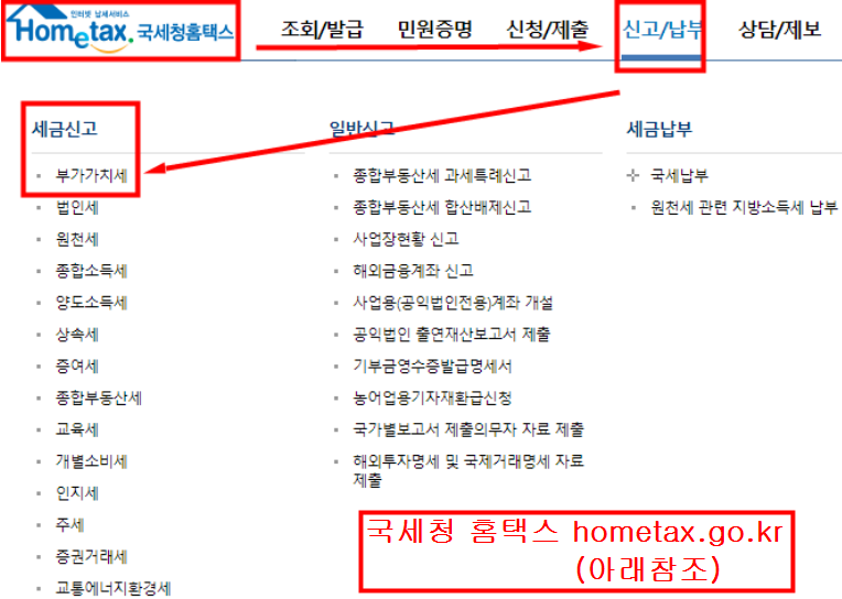 위에서 많이 알려드렸지만 다시한번 국세청 홈택스 부가세 신고납부하는 곳을 남겨드립니다.