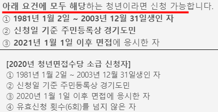 신청 홈페이지에서 접수하실때 경기도 청년 면접수당 자격 및 조건을 다시 한번 살펴보시기 바랍니다.