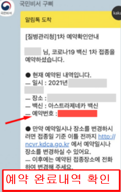 신청후에 예약한 병원, 1차와 2차 예방접종 시간 날짜, 예약번호, 백신 종류 등을 모두 확인하세요.