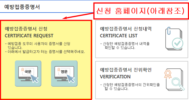 증명서 신청 및 진위여부 조회 홈페이지(nip.kdca.go.kr)에서 신청내역까지 다시 조회하실수도 있습니다.
