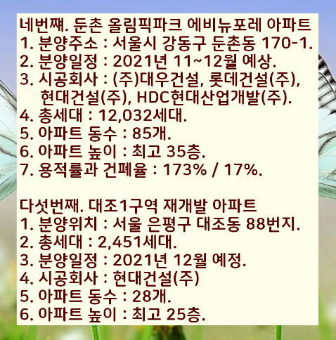 1. 분양주소 : 서울시 강동구 둔촌동 170-1번지.