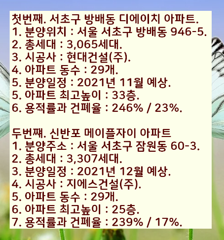 1. 분양주소 : 서울 서초구 반포동 12번지.