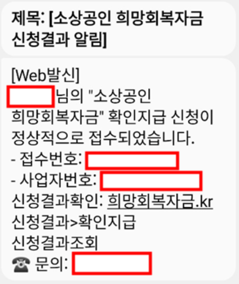 저도 오늘 소상공인 희망회복자금 확인지급 신청후 문자받았습니다.