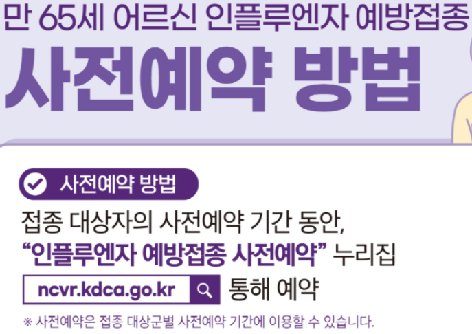 또한 만65세 이상의 경우에는 인플루엔자 예방접종을 사전예약할수있습니다.
