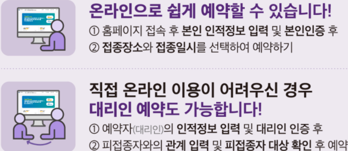아래에서 대상별 독감주사 예약방법을 확인하세요.