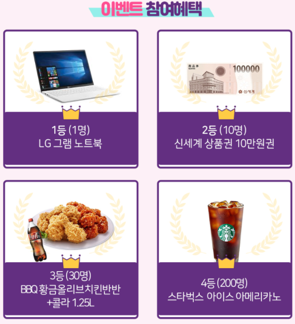 2. 2등은 신세계 상품권 10만원권을 10명에게 준다고 합니다.