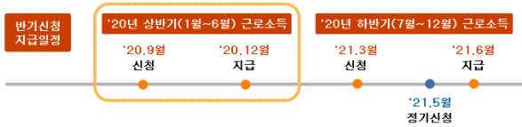 또한 2020년 하반기분에 대한 신청은 2021년 3월에 신청하시고 2021년 6월이 지급일입니다.