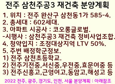 전주시 완산구에 분양예정인 삼천주공3단지 재건축아파트를 정리했습니다.