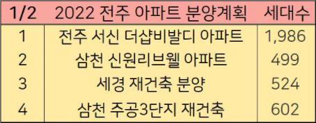 아래 2022년 전주, 광주, 경기도, 인천, 서울 아파트 분양계획도 같이 확인하세요.