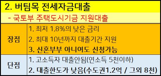2. 버팀목전세자금(신혼부부 아니여도 가능).