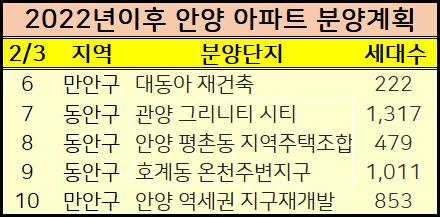 2022년 안양시에서 분양예정인 아파트 14곳을 표로 정리했습니다.