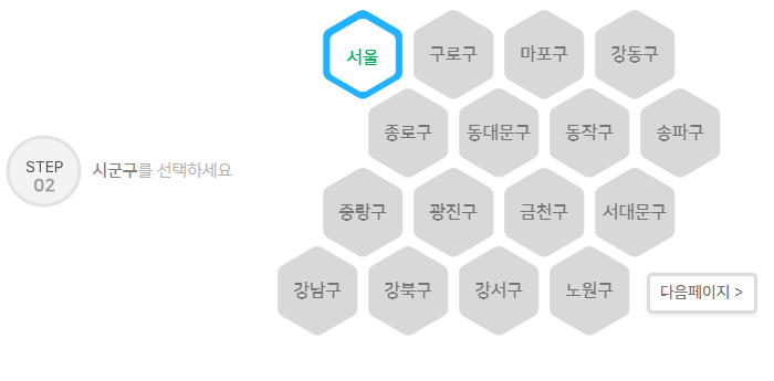 들어가시면 보이는 것처럼 본인의 광역시 단위 주소를 선택하셔야합니다.