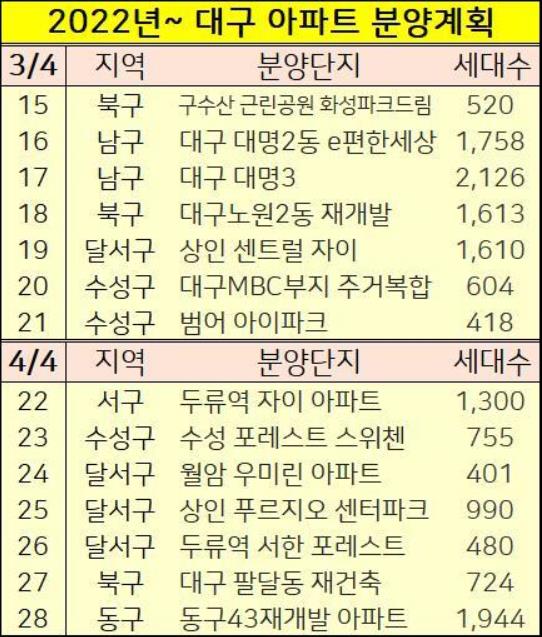 아래 2022년 대구 아파트 분양계획표도 확인하세요.