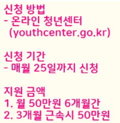 취업을 준비하고 계신분들은 꼭 이 글을 확인하시기 바랍니다. 왜냐하면 매달 50만원씩 최대 6개월간 300만원을 지원금 지급하며 취업후에는 3개월 근속시 50만원을 추가로 취업성공금으로 주기 때문입니다.