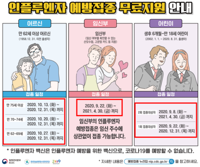 2020 무료 대상자분들은 독감 예방접종 시기에 신청하셔야 가격을 지불하지않고 주사를 맞으실 수 있습니다.