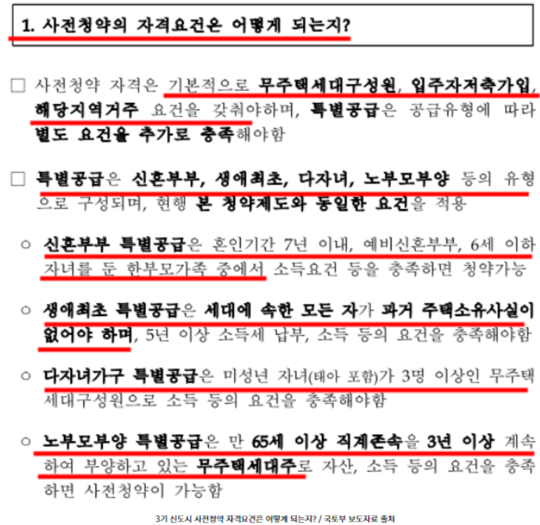이 글의 처음부분에서 제가 알려드린 알려드린 3기 신도시 위치와 시기 등 사전청약을 사이트에서 확인하셨으면 신혼부부 특별공급 전형 지원 자격요건에 대해서 알려드리겠습니다.