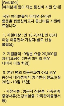 첫번쨰. 통신비 2만원 지원 대상