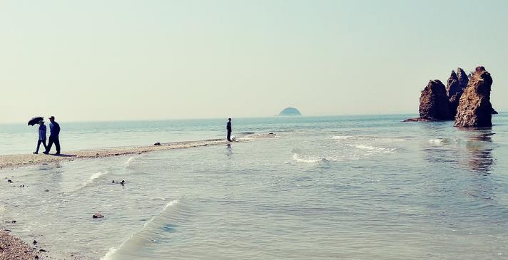 누에섬은 평상시에는 바다에 잠겨있지만 썰물때 길이 열리는 신기합곳입니다.