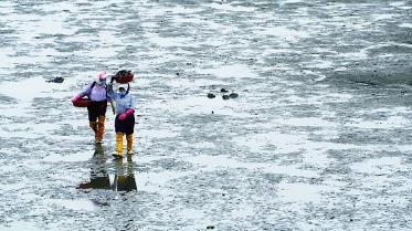 갯벌에서 조개를 캐서 구워먹으면 정말 재밌습니다.