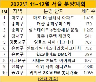 2022년 11월~12월 서울 아파트 분양계획을 정리했습니다.