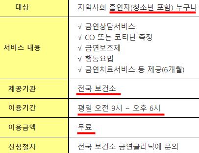 1. 신청방법 : 집에서 가까운 보건소의 금연클리닉 접수.