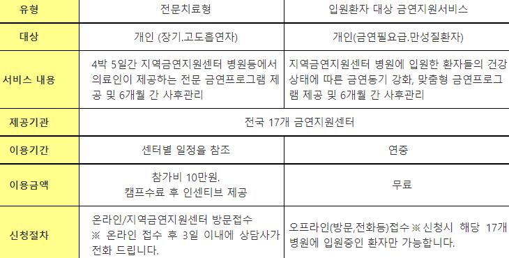 1) 4박5일 지역금연지원센터 병원동에서 의료인 제공 전문 프로그램 지원.