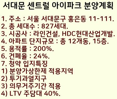 서울시 서대문구에 센트럴 아이파크 아파트 분양계획을 정리했습니다.