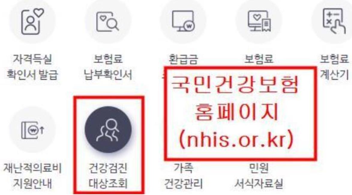 두번째. 메인화면에서 '건강검진 대상조회'를 선택합니다.