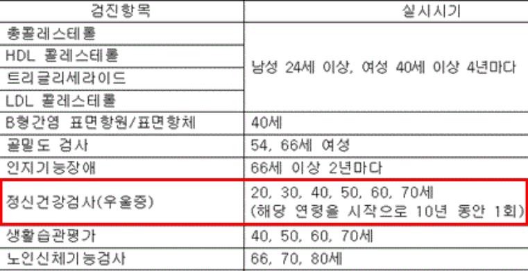 2. 20,30,40,50,60,70세까지 10년단위로 우울증 검사를 받을수있습니다.