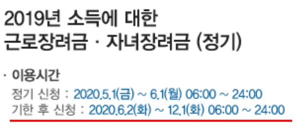 보시는것처럼 2020 근로장려금 정기 신청기간은 이미 지났지만 "기한후 신청'이라는 제도가 있습니다.
