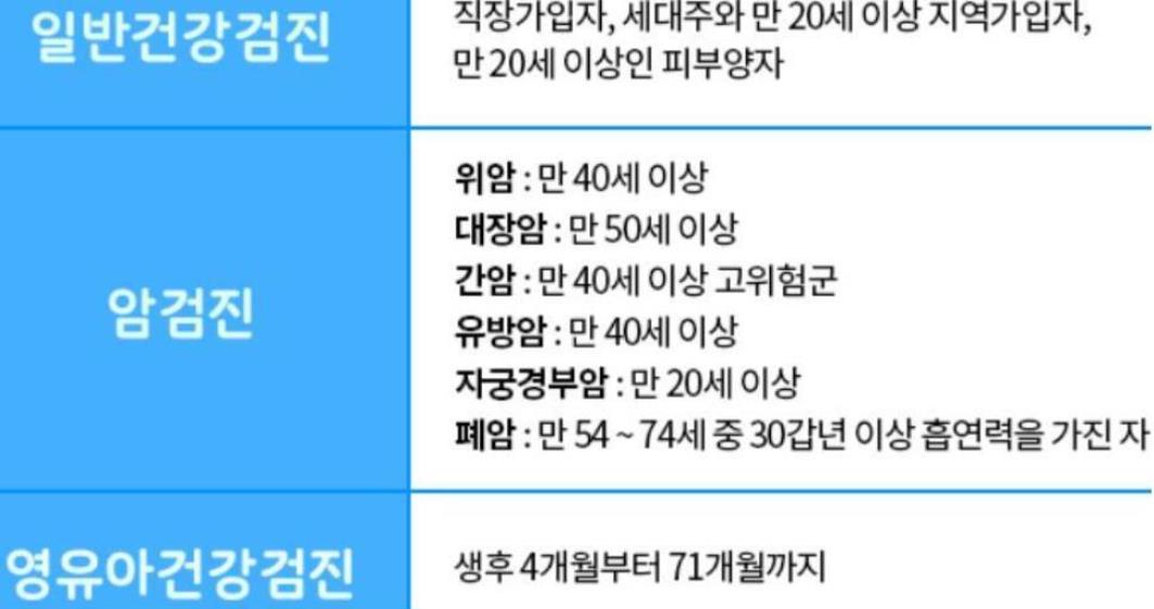 꼭 건강검진 무료 대상별 나이에 해당되지않아도 지원받을수있습니다.