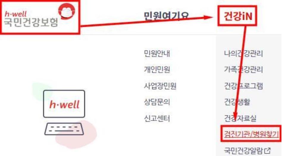 1. 국민건강보험공단(nhis.or.kr) 홈페이지에서 '건강in'를 선택합니다.
