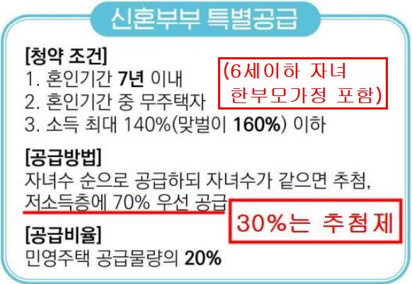 1. 신혼부부특별공급 : 6세이하 미성년자녀 한부모가정.