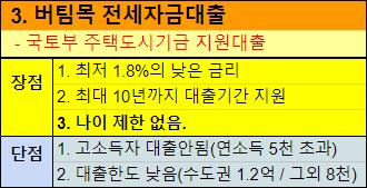 세번째. 버팀목 전세자금(고소득자 안됨).