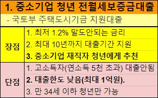 첫번째. 중소기업 청년 전월세보증금(중소기업 재직자만).