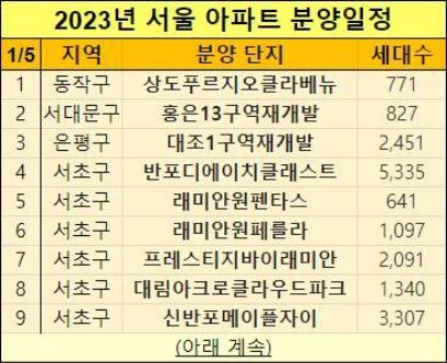 2023년 서울 분양예정 아파트 청약일정