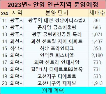 이렇게 2023년에 안양시에서 분양예정인 아파트들을 정리해서 알려드렸는데요.