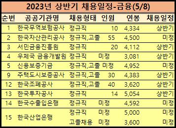 2023년 상반기 공기업 공채일정을 정리했습니다.