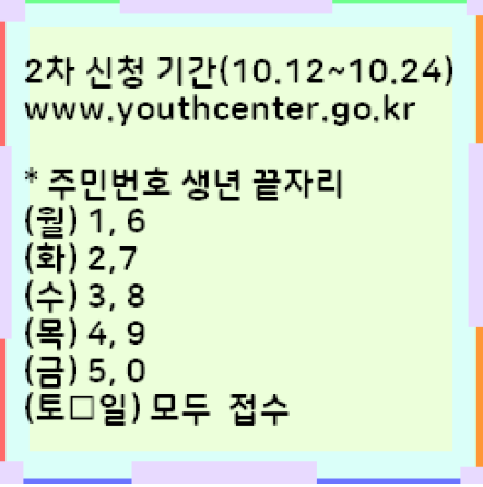 두번째. 미취업자, 대학생, 구직활동자는 청년특별구직지원금 50만원 2차 신청 : 10월12일부터 신청