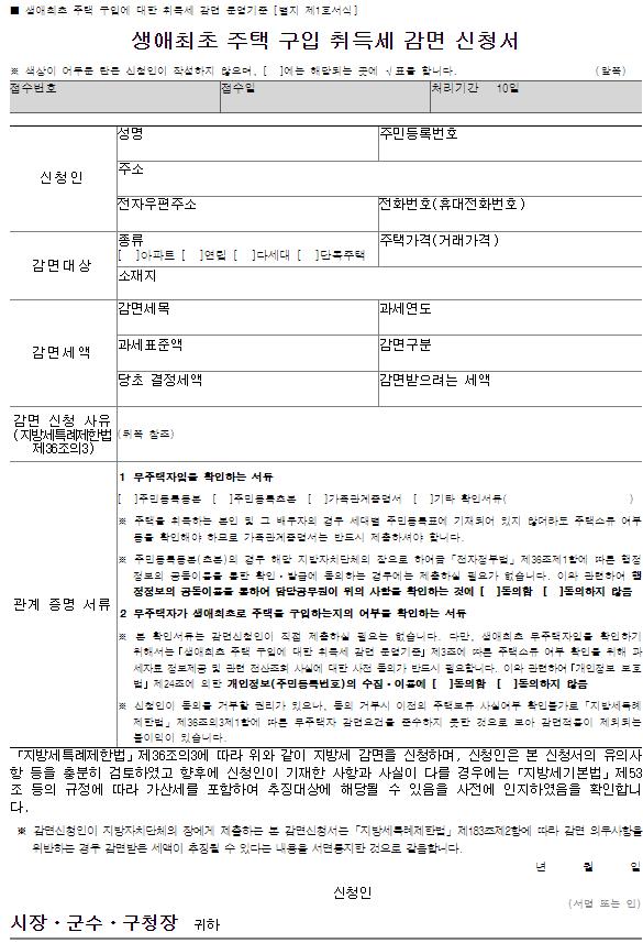 생애최초 주택구입 취득세 감면 신청서 작성법