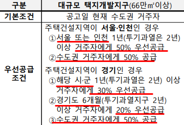 1. 서울 또는 인천에 1년이상 거주자에게 50%를 우선 공급합니다.