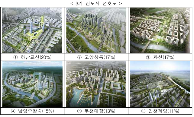이외에도 많은 관심과 사랑을 받고있는 부천 대장과 안산 장상지역의 3기 신도시가 있습니다. 위에 표에서 더욱 자세히 잘 정리되어있으니 확인하시기 바랍니다. 3기 신도시 지역별 선호도를 살펴보겠습니다.