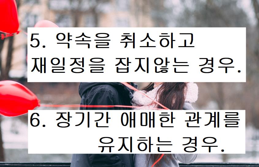 다섯번째. 약속을 취소한뒤 다시 일정을 잡지 않으면 썸이 아닙니다.