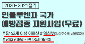 (만62세 이상 어르신과 임산부, 생후6개월에서 만18세 어린이까지 독감 무료접종 대상자입니다.)