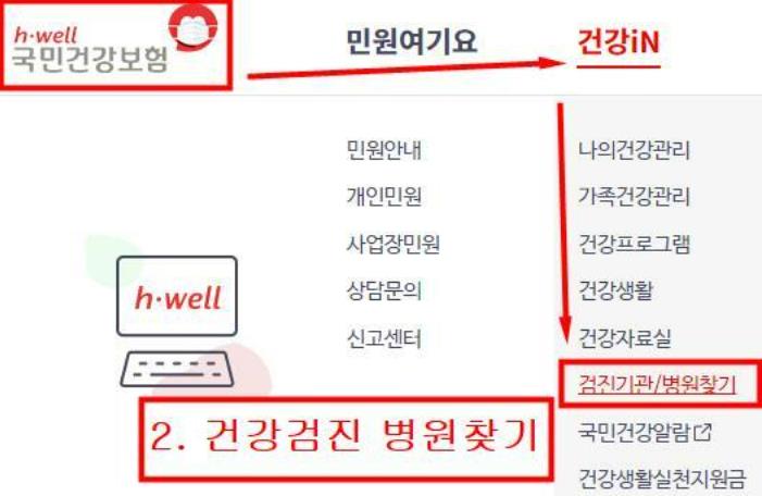 1. 국민건강보험(nhis.or.kr)에서 '건강in'에 들아갑니다.