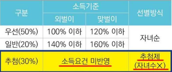 추첨제의 경우에는 소득조건을 고려할 필요가 없습니다.